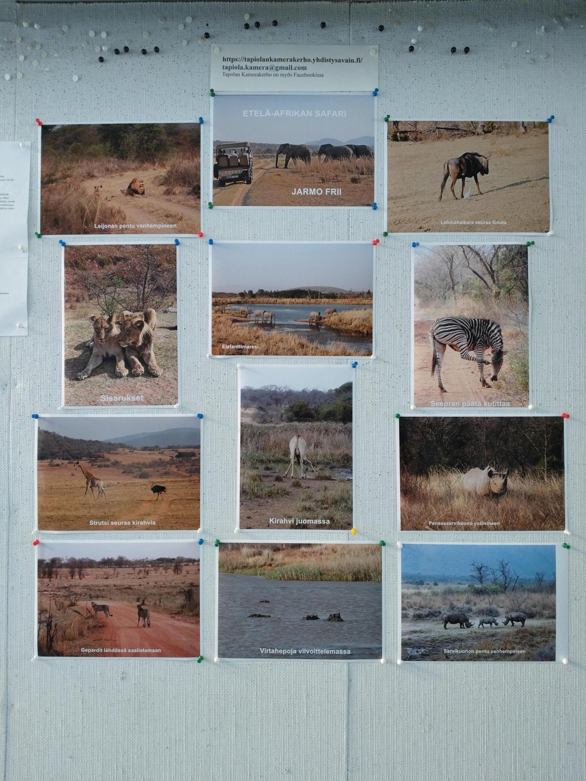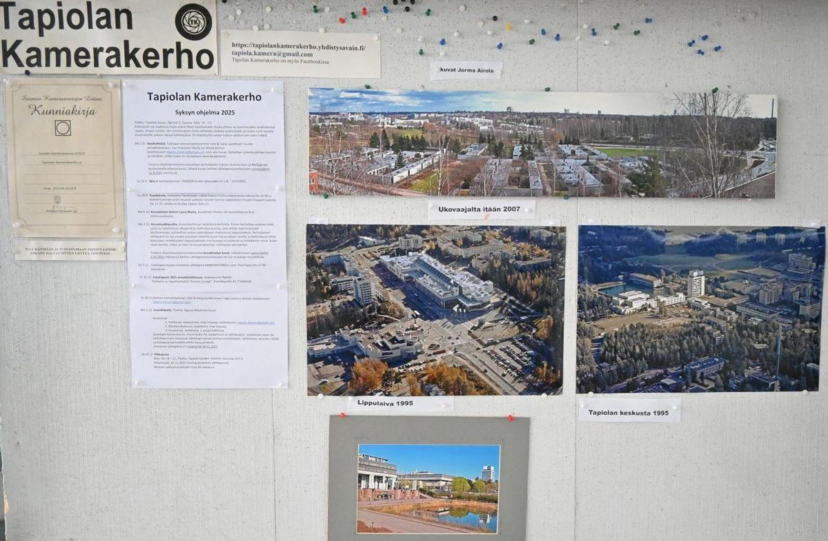 Vitriinissä Tapiontorilla on esillä kerhon ohjelma ja kerholaisten kuvia.